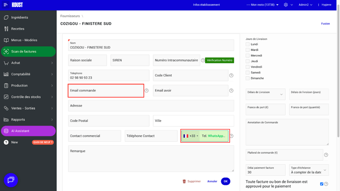 Avec Koust, vous pouvez envoyer vos commandes directement à vos fournisseurs, à condition qu’ils acceptent les commandes :