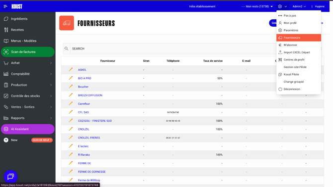 Accéder à la liste des fournisseurs :