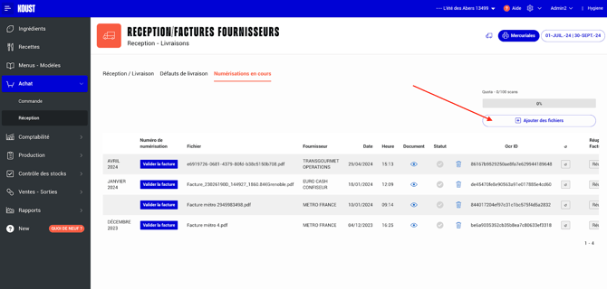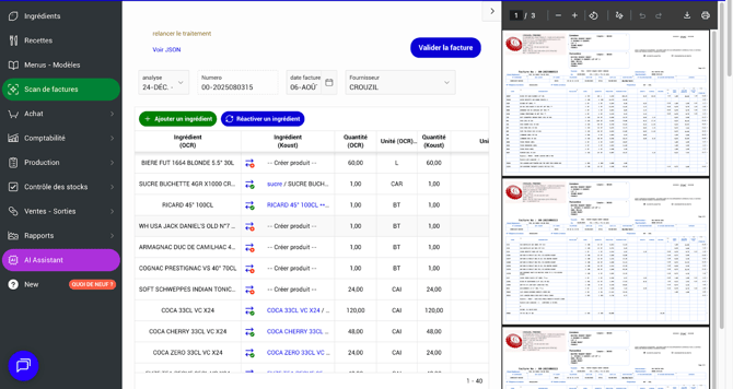 Vous pouvez créer vos ingrédients à partir de la numérisation de factures fournisseurs.