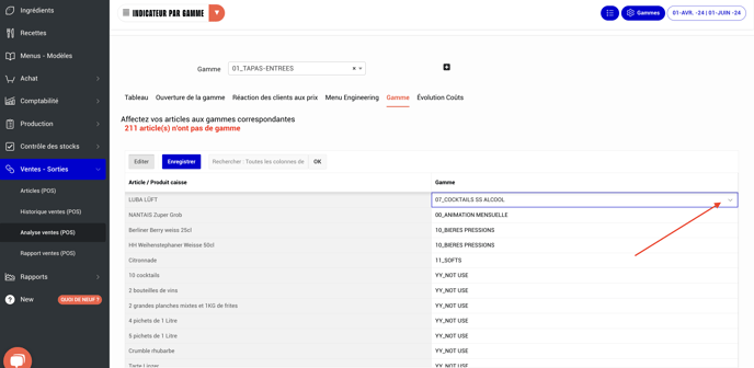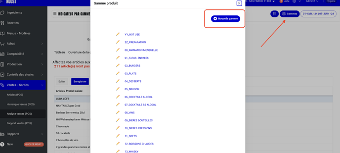 Les gammes articles vont vous permettre de classer vos produits en catégories pour ensuite comparer ces produits entre eux, notamment grâce au menu engineering.
