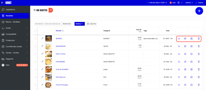 Le bouton Copier permet de dupliquer une recette existante.