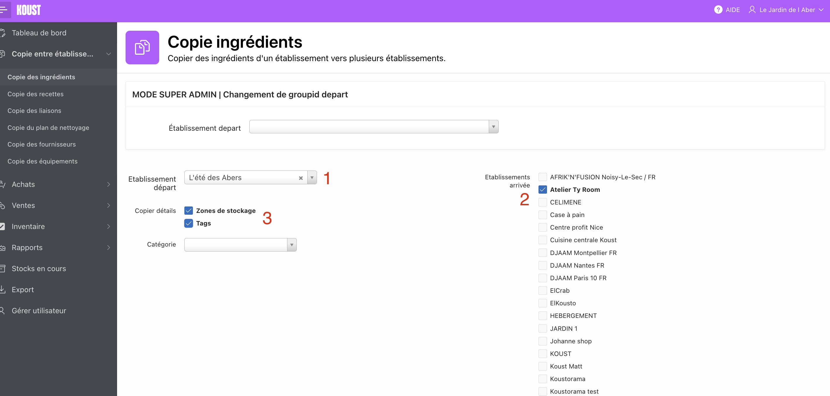 NB: Si vous copiez beaucoup d'ingrédients (+250) la copie peut ne pas fonctionner car trop de données sont sélectionnées, n'hésitez pas dans ce cas à copier les produits en plusieurs fois.
