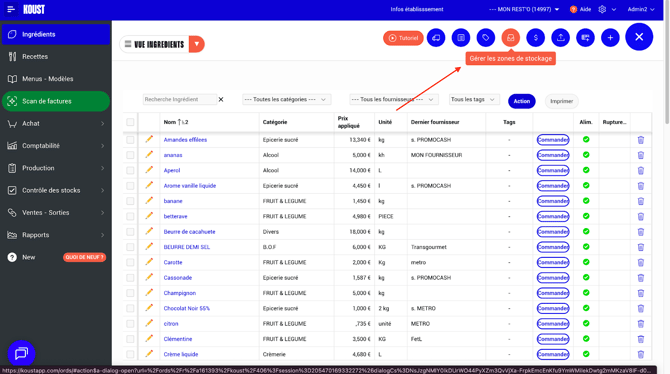 Les zones de stockage permettent de classer vos ingrédients afin de faciliter les inventaires.